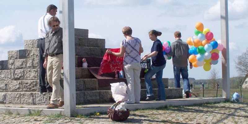 eine Familie. Diese bereitete das Denkmal für eine Jugendweihe-Feier