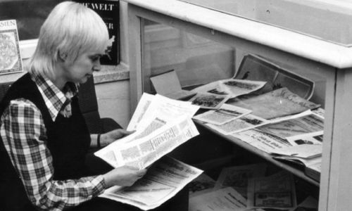 Die Diplom-Bibliothekarin Antje Fredrich hat die ehemalige Zentralbibliothek aufgebaut. Hier ein Bild von 1981. | |