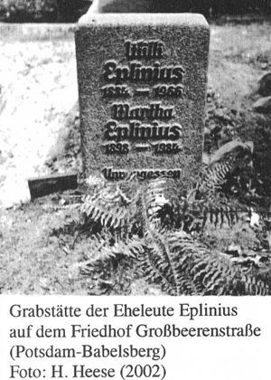 1953 zog Eplinius von Werder nach Potsdam-Babelsberg. Später erhielt Eplinius mit seiner Frau Martha eine Werkswohnung in der Ernst-Thälmann-Str. 200.