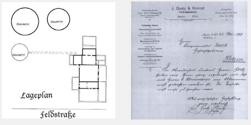 Aber im Gegensatz zum Bauantrag der Firma Goetz und Konrad, der eine spätere Erweiterung mit insgesamt 3 Gasspeichern vorsah, blieb es bei dem einen örtlichen.