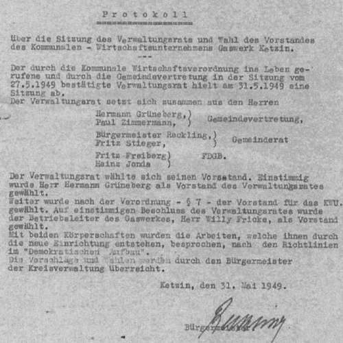 Am 8. März 1949 wurde der Rat der Stadt Ketzin aufgefordert, ein Kommunalwirtschaftliches