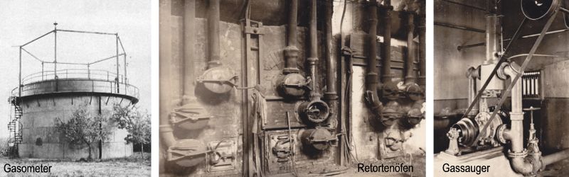 Aber zuerst musste die Gasanstalt gebaut werden. Die Bauausführung übernahm die heimische Firma