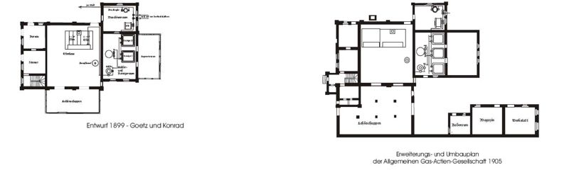 Ein Jahr nach Ankauf der Gasanstalt wurden schon die ersten Umbauten geplant und auch realisiert. Im großzügig geplanten Retortenraum wurde ein dritter Ofen eingebaut und der Kohlespeicher erweitert sowie ein weiterer Schwefelreiniger installiert. Hinzu kamen an der Grenze zum Nachbargrundstück ein Materiallager, eine Werkstatt und ein Waschraum.