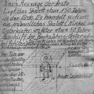 | 1935 angefertigte Skizze vom Fundort des Skelettes |