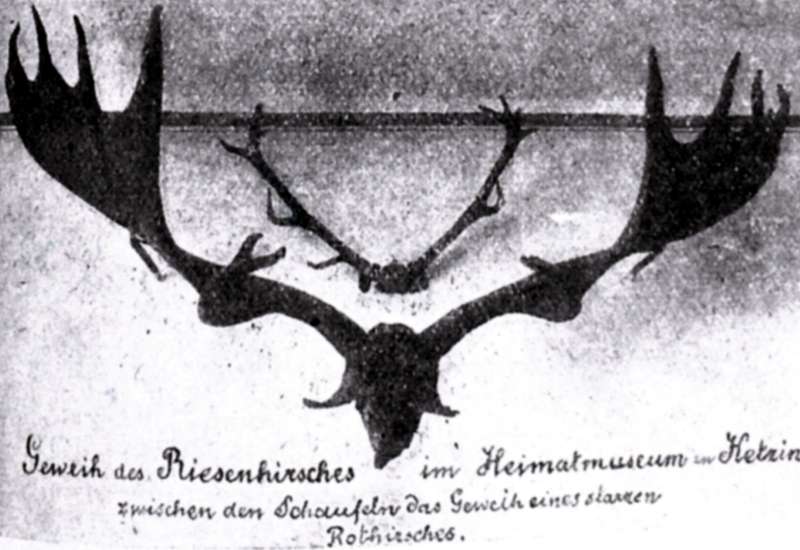 Bis Mitte der 50er Jahre des vorigen Jahrhunderts befand sich so ein Geweih im jetzigen Kultur- und Tourismuszentrum Ketzin/Havel. Bis 1945 war das Haus Museum und danach wurde es aufgrund der wachsenden Kinderzahl als Schule gebraucht. Viele Male wurden die Museumsstücke in die verschiedensten Gebäude der Stadt gebracht. Dabei schrumpfte ihre Zahl vor allem durch Diebstahl und unsachgemäße Behandlung beim Transport und beim Einlagern in den neuen Räumen. Außerdem gab es Anordnungen übergeordneter Instanzen, wertvolle und seltene Exemplare an größere Museen abzugeben. Durch diese Wirren verschwand auch das Geweih des Riesenhirschen. Nachforschungen in den Naturkundemuseen in Potsdam und Berlin sowie im Märkischen Museum Berlin zum Verbleib des Hirschgeweihs führten zu keinem Ergebnis. Man muss wohl der Meinung einer Mitarbeiterin des Museums für Naturkunde Berlin folgen, die der Ansicht ist, dass dieses Geweih in irgendeiner Wohnung als Hutständer genutzt wird. |