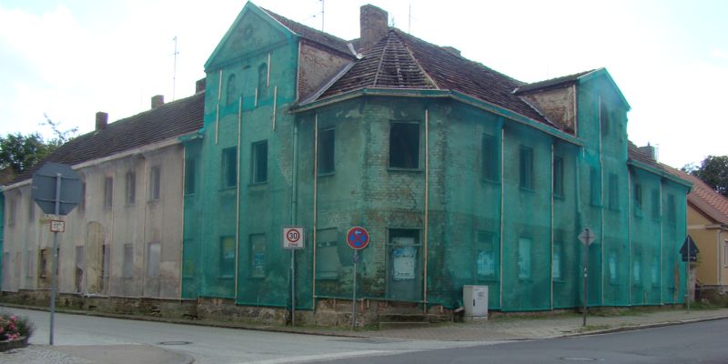 Zur Wende 1989 wohnten noch 10 Mieter in dem großen Gebäude. Diesen wurden nach und nach andere Wohnungen zugewiesen. Das „Rote Schloss“ war nicht mehr bewohnbar. Die Elektroleitungen hingen von den Wänden, die Gasleitungen waren marode und die Wasser- und Abwasserversorgung stockte aufgrund verstopfter Versorgungsleitungen. Der größte Teil davon war seit dem Bau des Gebäudes vor über hundert Jahren nicht erneuert worden. 1993, das Wohnhaus war 120 Jahre alt, zogen die letzten Mieter aus. Seit dem steht das Haus leer. Die Fenster sind eingeschlagen, die Eingänge oft aufgebrochen, das Stallgebäude eingefallen. Die Natur erobert sich das Terrain zurück.. Es herrscht eine fast undurchdringliche Wildnis auf dem Gelände. 2012 erwarb die Stadt das Gebäude. Es liegt im Sanierungsgebiet von Ketzin/Havel. Die Ruine abzureißen und etwas Neues zu bauen, wird die Millionengrenze für Investitionsmittel überschreiten. Ein Investor ist bereit, ein modernes Mehrgenerationenhaus zu errichten, wenn entsprechende Fördergelder bewilligt werden. Nur für Leute mit durchschnittlichem Einkommen sind die angedachten Mieten nicht bezahlbar. |