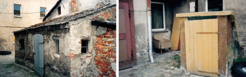 Besonders primitiv waren das Toilettengebäude und die „Aschegrube“. Für die über 50 Bewohner des Hauses gab es in einem kleinen Holzgebäude drei „Plumpsklos“. Diese befanden sich von den verschiedenen Haustüren 20 bis 30 Meter entfernt. Gleich unter den Toiletten befand sich eine riesige „Klogrube“, die aus Ziegeln gemauert und mit Holzbohlen abgedeckt war. Für Bewohner, die nachts im Winter bei strenger Kälte mit einem Talglicht oder in moderner Zeit mit einer Taschenlampe bestückt, die Klos aufsuchen mussten, war das ein Abenteuer. Erst 1938 wurden auf Befehl des NSDAP-Kreisleiters noch weitere drei Toiletten angebaut. Die gesamte Anlage wurde in den 80ger Jahren des vorigen Jahrhunderts wegen Baufälligkeit abgerissen. Es wurde ein steinernes Toilettengebäude mit einer Sickergrube errichtet. Die Aschegrube war ein größeres gemauertes Viereck, das mit Wellblech abgedeckt war. Durch eine Klappe aus demselben Material wurden hier der Hausmüll und die Asche aus den Herden und Öfen entsorgt. Sowohl die Fäkalien- als auch die Aschegrube wurden in der Regel durch den Hausverwalter, Vizewirt genannt, entleert. Dieser besaß als besonderes Privileg neben den Toiletten einen kleinen mit einem Zaun umgebenen Garten. Trink- und Brauchwasser holten sich die Mieter in den ersten Jahrzehnten von einer im Hof befindlichen Pumpe. Erst 1931 wurden Wasserleitungen in den Wohnungen installiert. Bis zum Bau der Kanalisation in der Stadt, floss das Abwasser auf die Straße. Solche Wohnverhältnisse gab es in Ketzin/Havel in zahlreichen Wohnhäusern. Da die Miete auch noch zu DDR-Zeiten für eine Zweiraumwohnung im „Roten Schloss“ nur 14 DDR-Mark betrug, war die Verbesserung der Wohnverhältnisse illusorisch. |